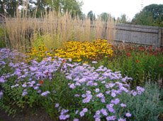 Herbaceous perennials and grasses make a bold statement in a large semi-rural garden on the outskirts of…